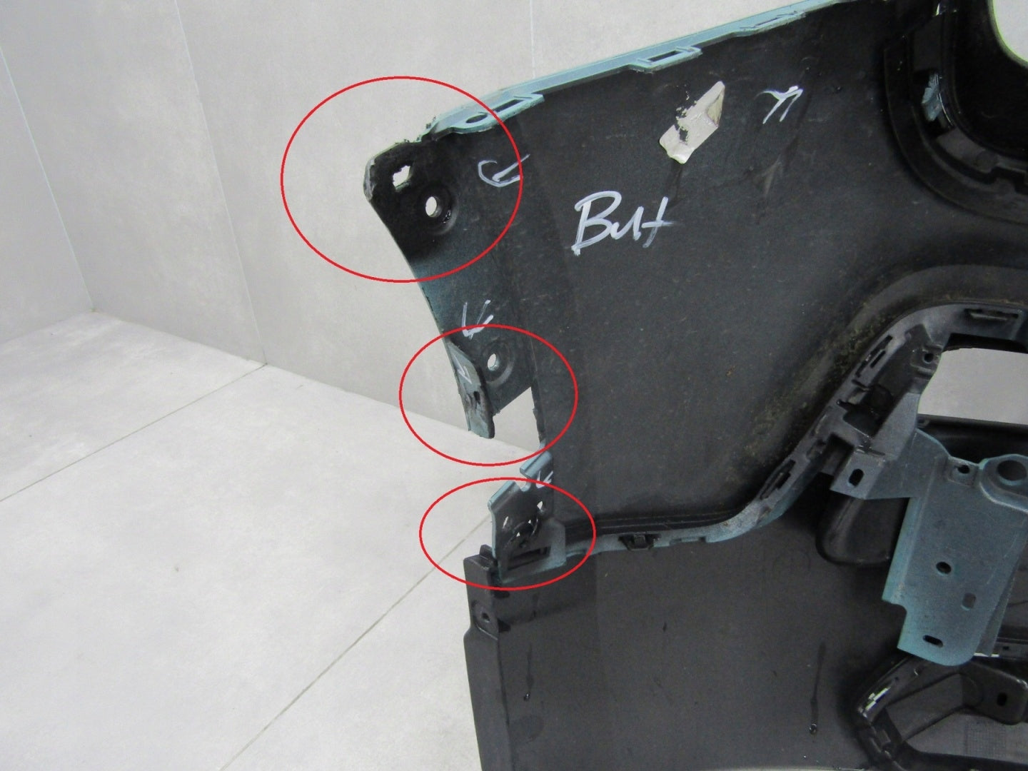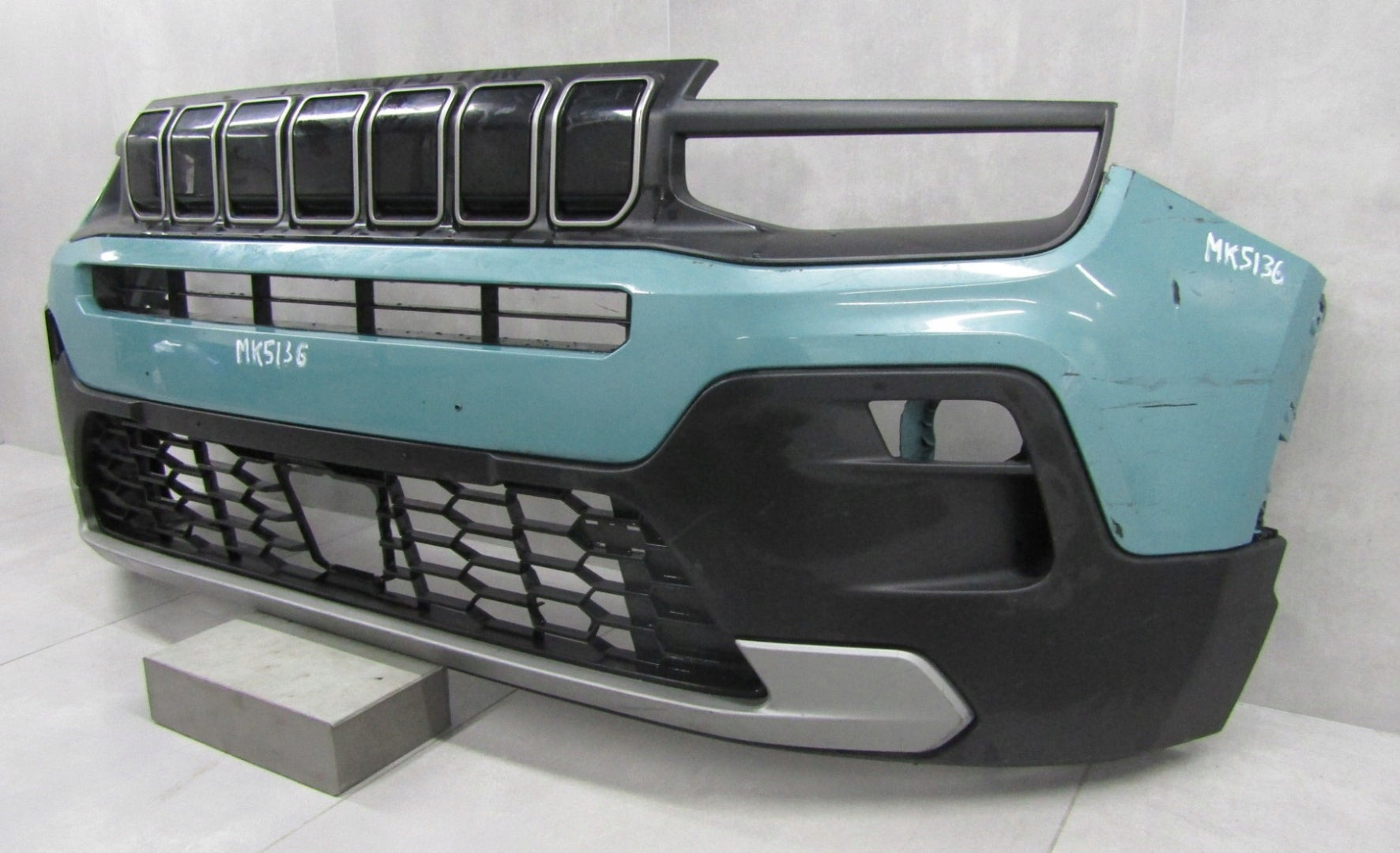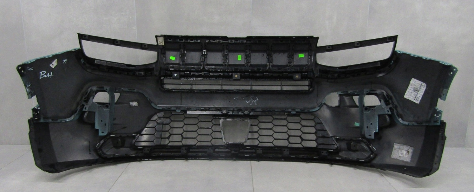 The bumper has scratches and has been repaired as shown in the photos. Each body element requires repainting. The paint code for the part sold is not specified.